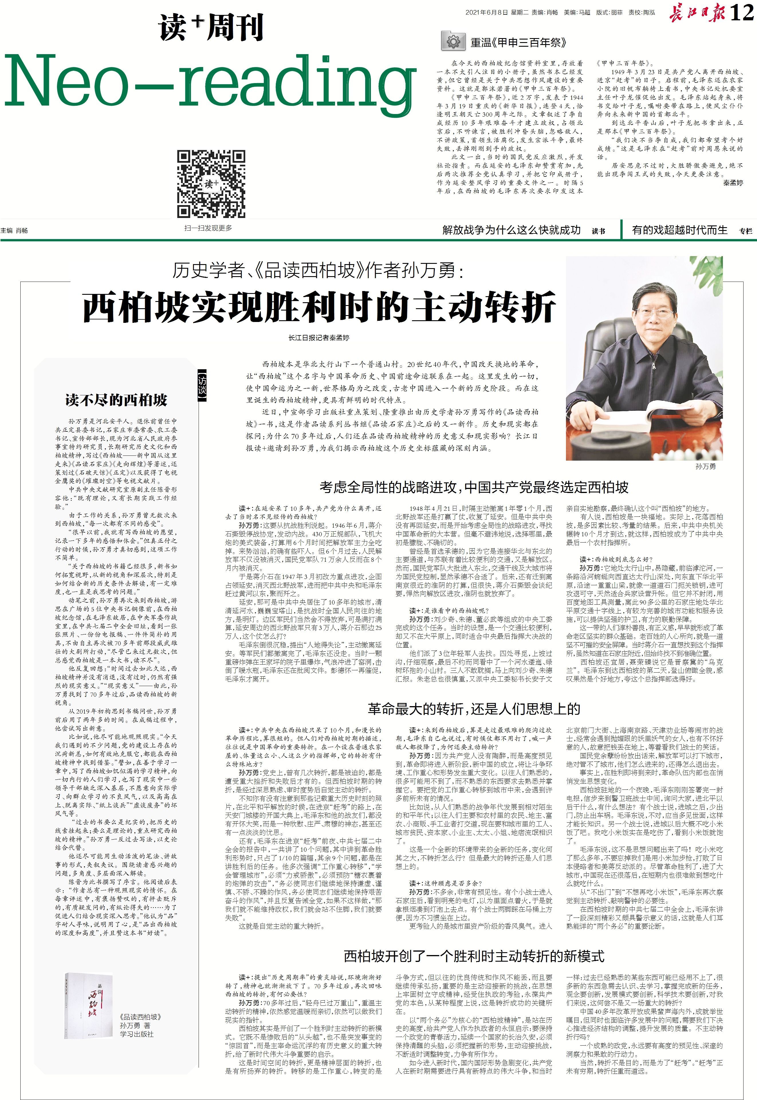 1949年3月23日是共产党人离开西柏坡、进京“赶考”的日子。启程前,毛泽东还在农家小院的旧帆布躺椅上看书,中央书记处机要室主任叶子龙催促他出发。毛泽东站起身来,将书交给叶子龙,嘱咐要带在路上,便风尘仆仆奔向未来新中国的首都北平。