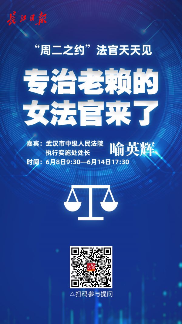 直播后,喻英辉处长将在聊天室轮值一周,至6月14日17时30分,每天线上为网友提供法律咨询服务。网友可点击下图二维码进入,在“参与评论”内直接提问。