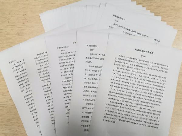 部分接受捐助的学生写下的感谢信。