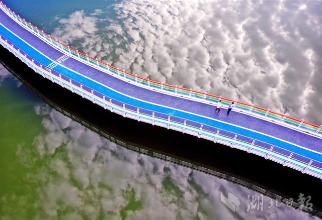 6月8日,荆门市天气晴好,位于东宝区子陵铺镇曾庙村的龙凤山公园碧水蓝天,白云朵朵,犹如“天空之境”,吸引了不少市民前来打卡。据介绍,龙凤山公园是东宝区的重点民生工程,改造成为集生态旅游、文化休闲于一体的综合性公园,是城北居民重要的休闲场所。近些年,荆门着力打造生态宜居的新型现代化城市,大小游园相继开放,改善了人居环境,更让荆门市民幸福感显著提升。(视界网 朱俊波 摄)