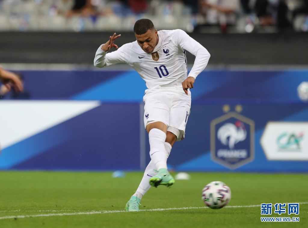 6月8日,法国队球员姆巴佩在比赛中射门。
