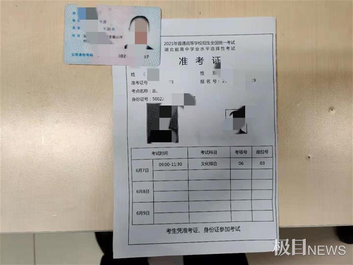 6月6日下午3时20分,武汉地铁3号线宏图大道站站务员在终点站清理车厢时,发现一张高考准考证,站务员立即将准考证交到当班辅警柳布手中。