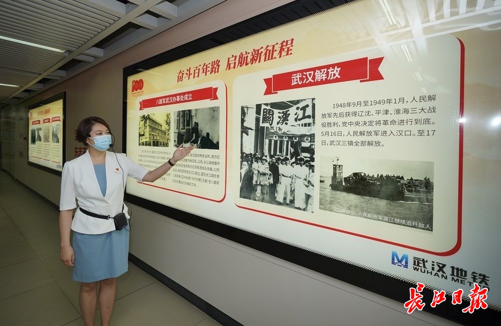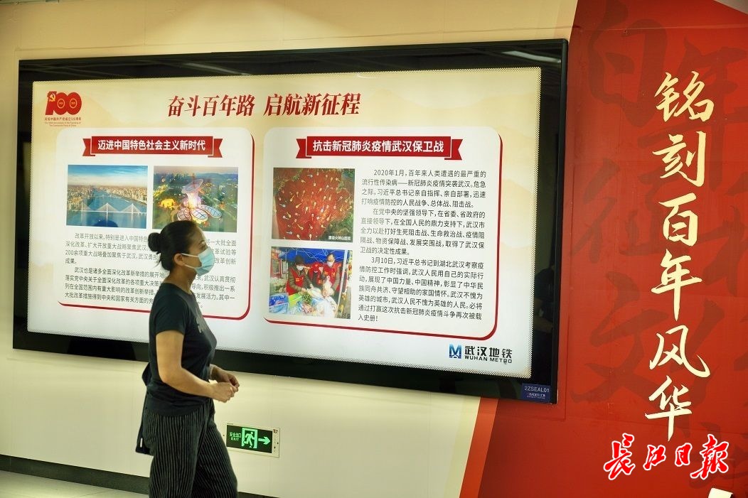 洪山地铁站内的百年文化墙导览。长江日报记者刘帅 摄