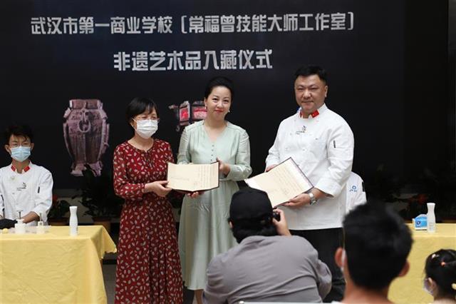 湖北日报讯(记者海冰、通讯员裴少菲、丁燕)6月9日,2021年“文化与自然遗产日”前,围绕今年主题“人民的非遗 人民共享”的主题,武汉博物馆联合武汉市第一商业学校,举办常福曾技能大师工作室非遗艺术品入藏武汉博物馆仪式。