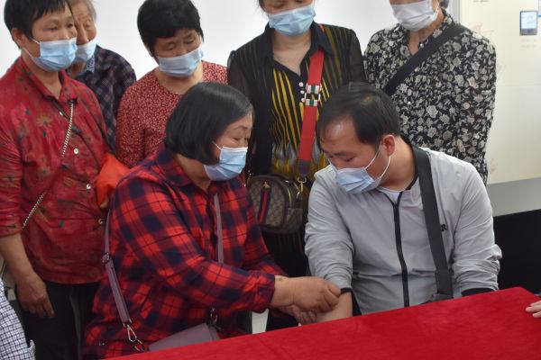 5日上午,初夏刺眼的阳光照在身上有些烫人。9时许,邱湖村委会一间办公室里,一个盖着红布的长条桌上摆着水果和鲜花,背后的墙上,挂着写有“团圆”行动认亲会的红色条幅。