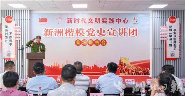 中国共产党成立100周年之际,新洲区成立楷模党史宣讲团,邀请重要事件亲历者和见证者、理论工作者、一线实践者,特别是时代楷模、道德模范、武汉楷模、最美人物等先进典型深入基层开展宣讲,生动讲述党带领人民拼搏奋斗、追梦圆梦的时代故事。该区把党史学习教育和楷模事迹宣传结合起来,依托新时代文明实践中心(站、所),用身边的楷模榜样,以百姓更喜闻乐见的形式,让宣讲活动更有吸引力和感染力。