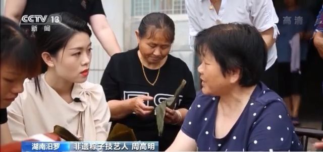 非遗粽子技艺人 周高明:底下要留点空间,两角也要留点空间,如果你包的太紧了就都胀出来了。