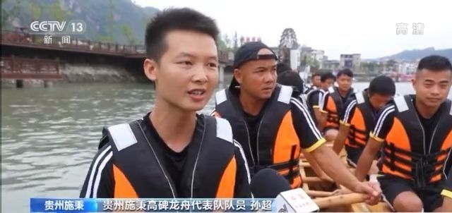 贵州施秉高碑龙舟代表队队员 孙超:队员的话一共是十九人。舵手是掌控这艘船的方向,所有的队员都要跟着鼓手(击鼓)的节奏、鼓点来划这艘船。起步的时候要迅速先把船划起来,节奏会比较快。途中的时候,我们会把桨频放慢一点。到冲刺区的一百米,我们又会把桨频提高让船更快。我们要像划龙舟一样,大家团结一致,铆足干劲,未来我们要创造更美好的生活。