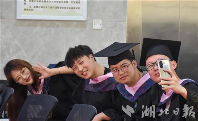 毕业生们穿着学士服,刘明达为他们一一拨穗。师生们进行了座谈交流,并补拍了一张特殊的毕业照。