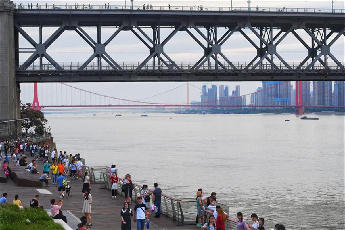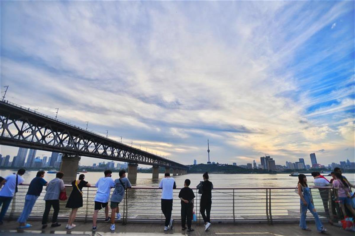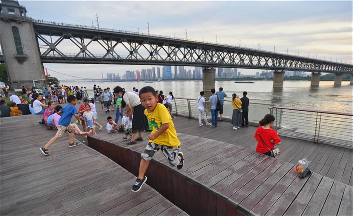 6月13日7时许,武汉长江大桥武昌桥头堡,夕阳西下,美景无限,大人们临江而息,孩子们在一旁嬉戏玩耍,江风吹来甚是舒服。