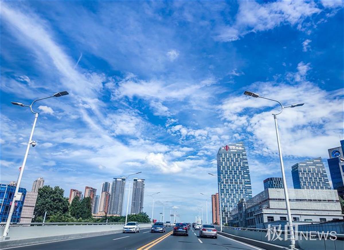 6月14日,武汉天空“颜值”飙升,朵朵白云衬托着的晴朗的天空,武汉的天空再现湛蓝的色彩,许多市民和来汉的游客用惊艳的武汉蓝天白云刷爆朋友圈,当天的“武汉蓝”让人们陶醉。