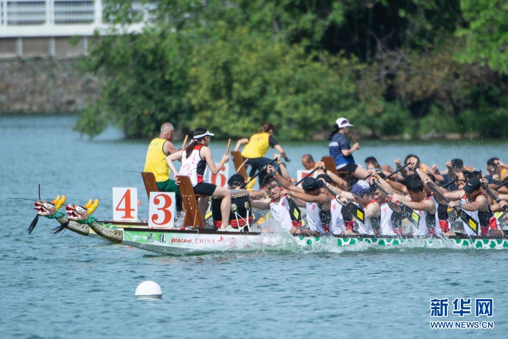 当日,由澳门特别行政区政府体育局和中国澳门龙舟总会主办的“2021澳门国际龙舟赛”标准龙500米公开组及女子组赛事在澳门南湾湖水上活动中心举行。
