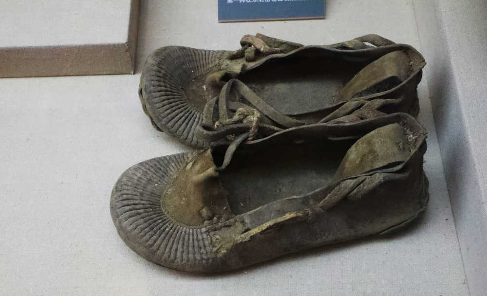 抗联被服厂制作的皮鞋,被战士们用来充饥。新华社记者 何山 摄
