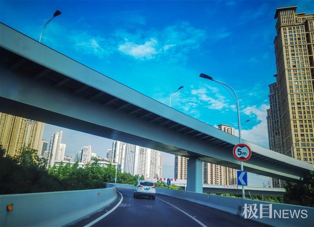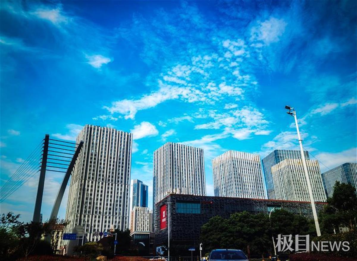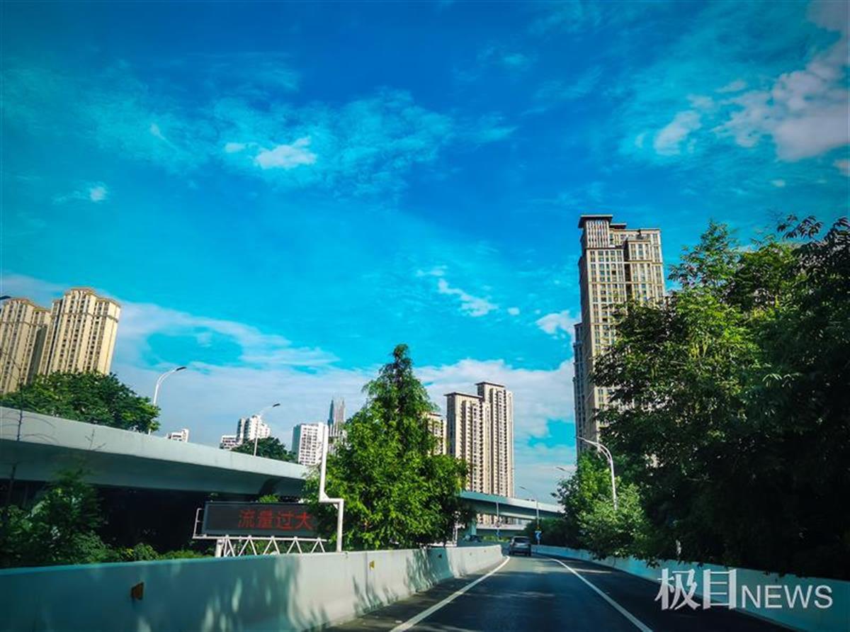 江城天空湛蓝、白云朵朵,令人心旷神怡