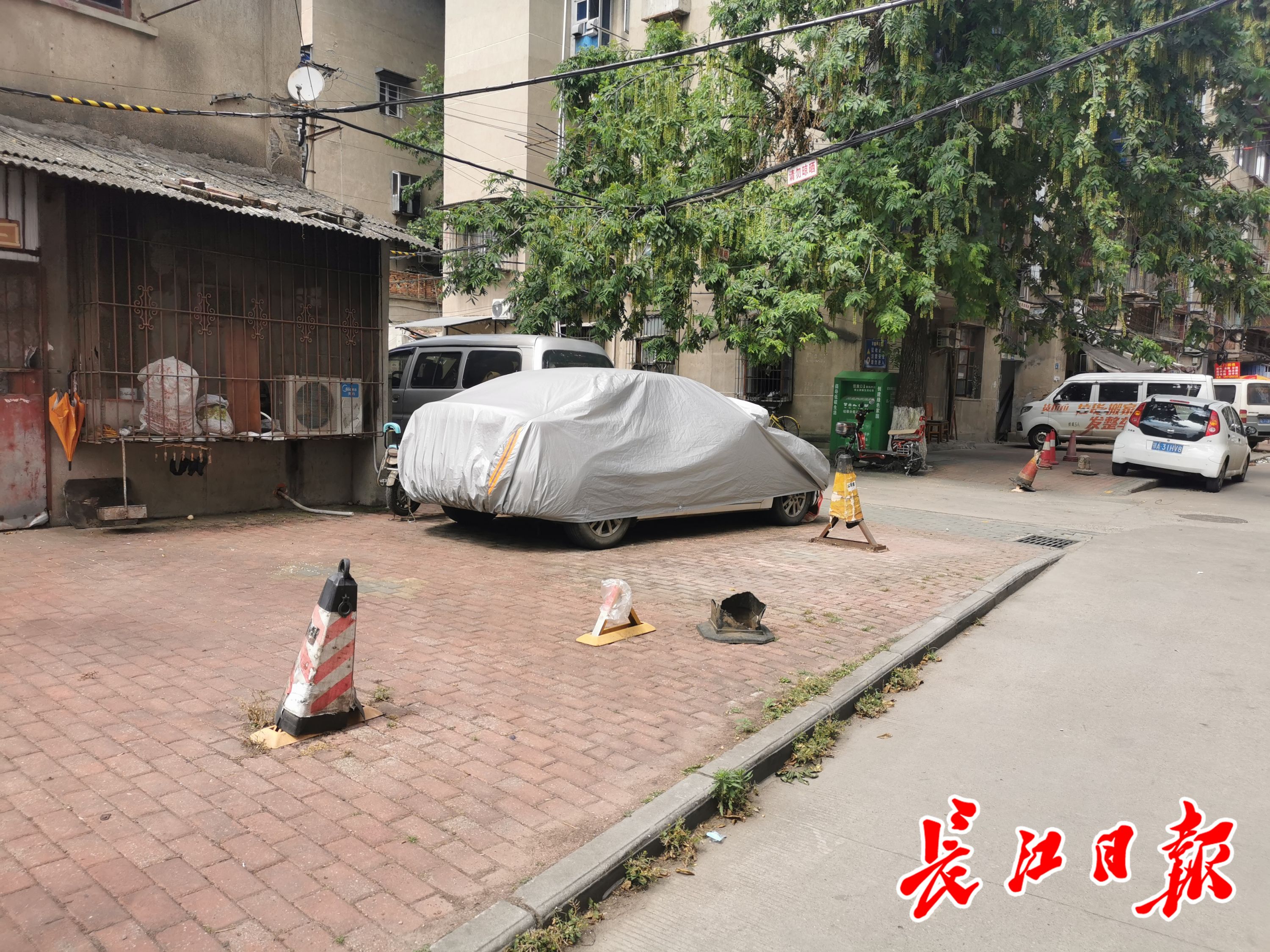 棉花街上有人私设地锁。长江日报记者孙笑天 摄