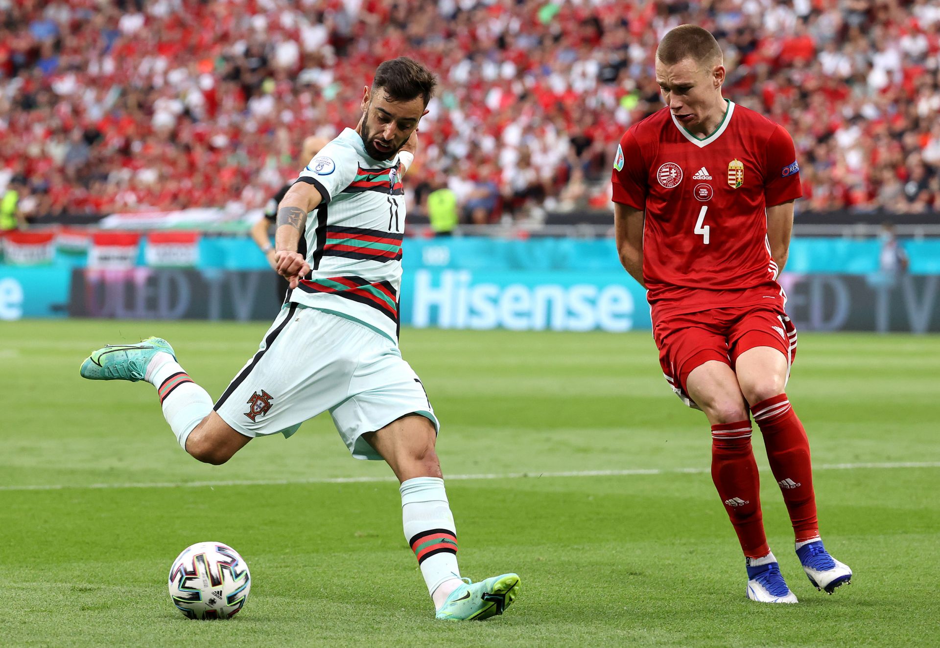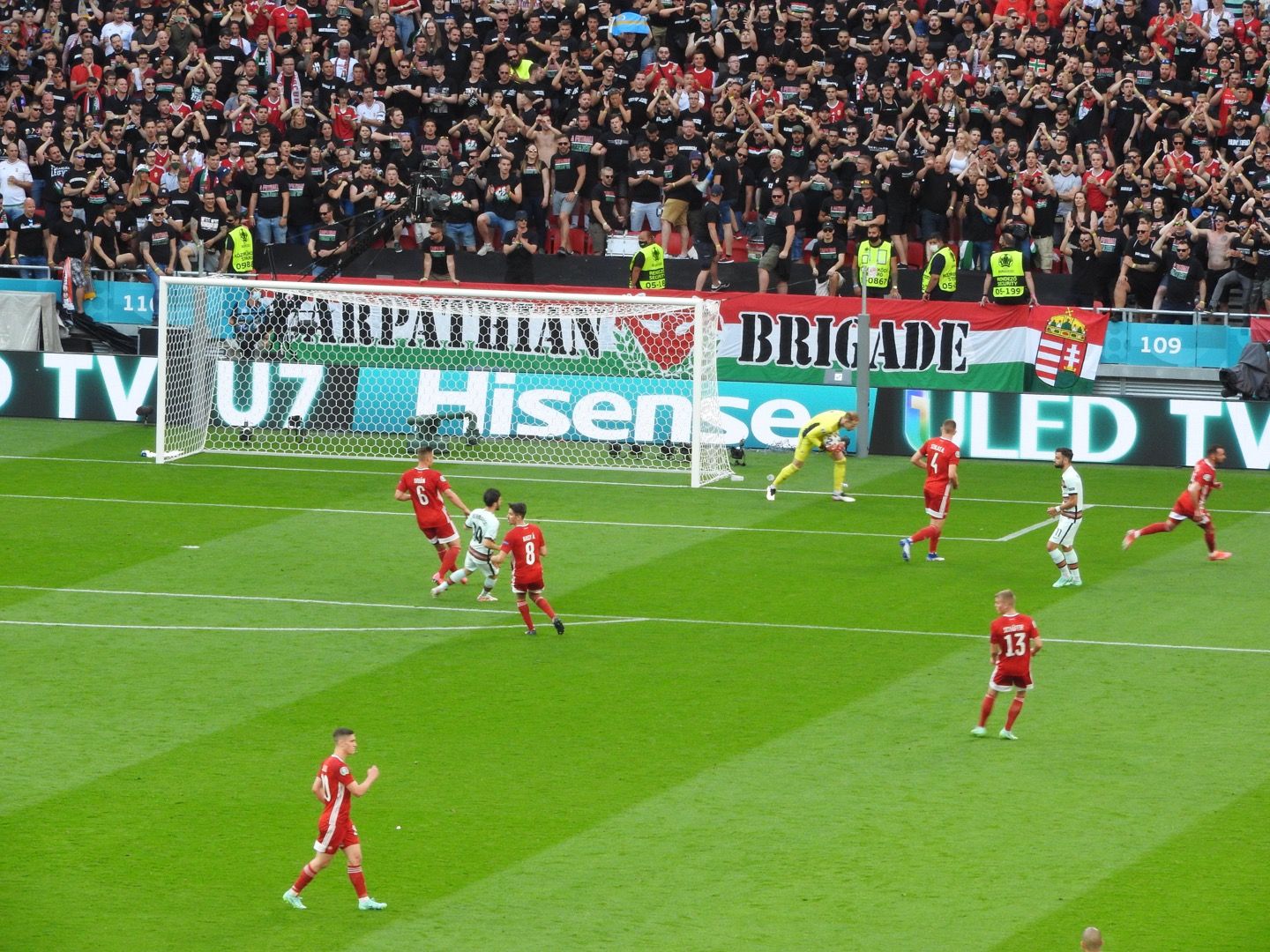 北京时间6月16日凌晨0点,2020欧洲杯迎来了“死亡之组”F组的首场对决,匈牙利坐镇主场普斯卡什竞技场迎战卫冕冠军葡萄牙。上半场比赛,双方战成0:0。下半场比赛,格雷罗推射得分,随后C罗点射破门,补时阶段C罗完成梅开二度。