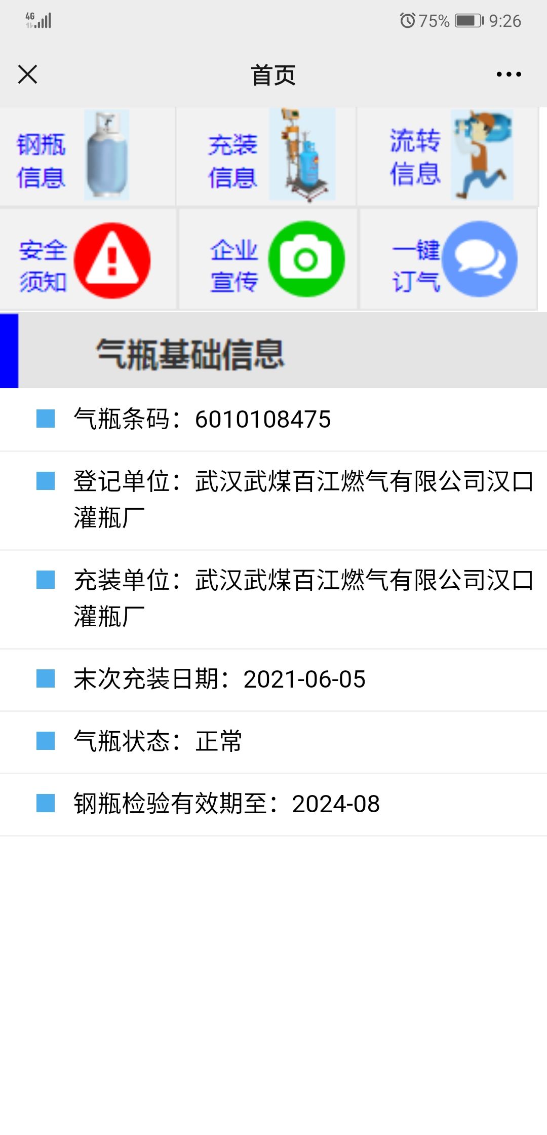 用支付宝、微信扫码可以查询钢瓶信息、充装信息、流转信息等。 长江日报记者覃柳玮 截图
