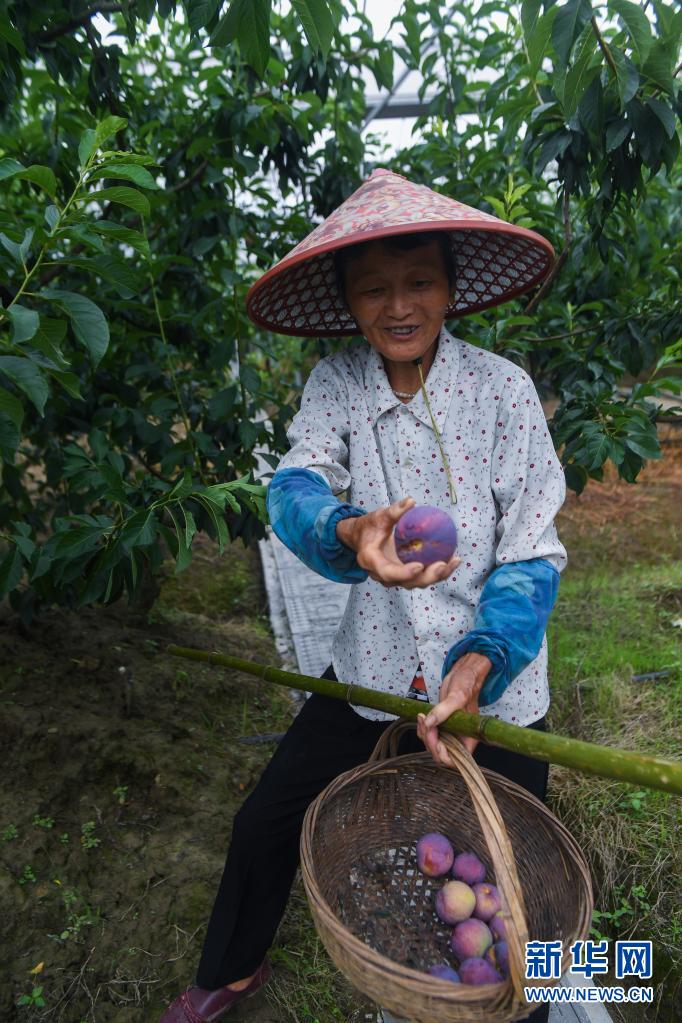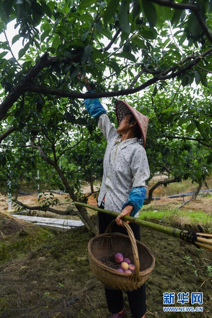 6月16日,桃园村的果农在槜李园中采摘成熟的果实。