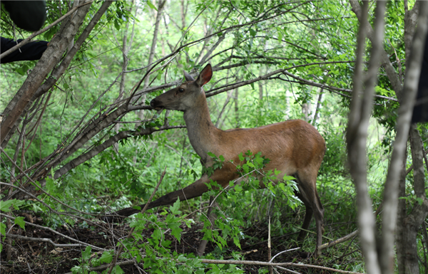6月15日10时许,黄泥河森林公安局青沟子派出所民警在辖区重点林班巡逻检查时,接到林场工作人员反映称,在桦皮林场发现疑似野生马鹿被困。随即,民警迅速赶往现场。