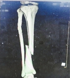 刘先生家住蔡甸,4月15日,刘先生爬上梯子取高处的重物时不慎摔倒。当时感到右小腿剧痛,家人赶紧将他送到附近医院检查,发现右腿胫骨骨折,需要牵引并进行手术复位。“我怕疼,不想挨这一刀,就想找别的法子治疗”,刘先生想起家附近有一家按摩理疗馆,听说会治疗骨伤,于是出院到该处求治。按照按摩理疗馆“医生”建议,在腿上打了夹板,然后卧床休养。