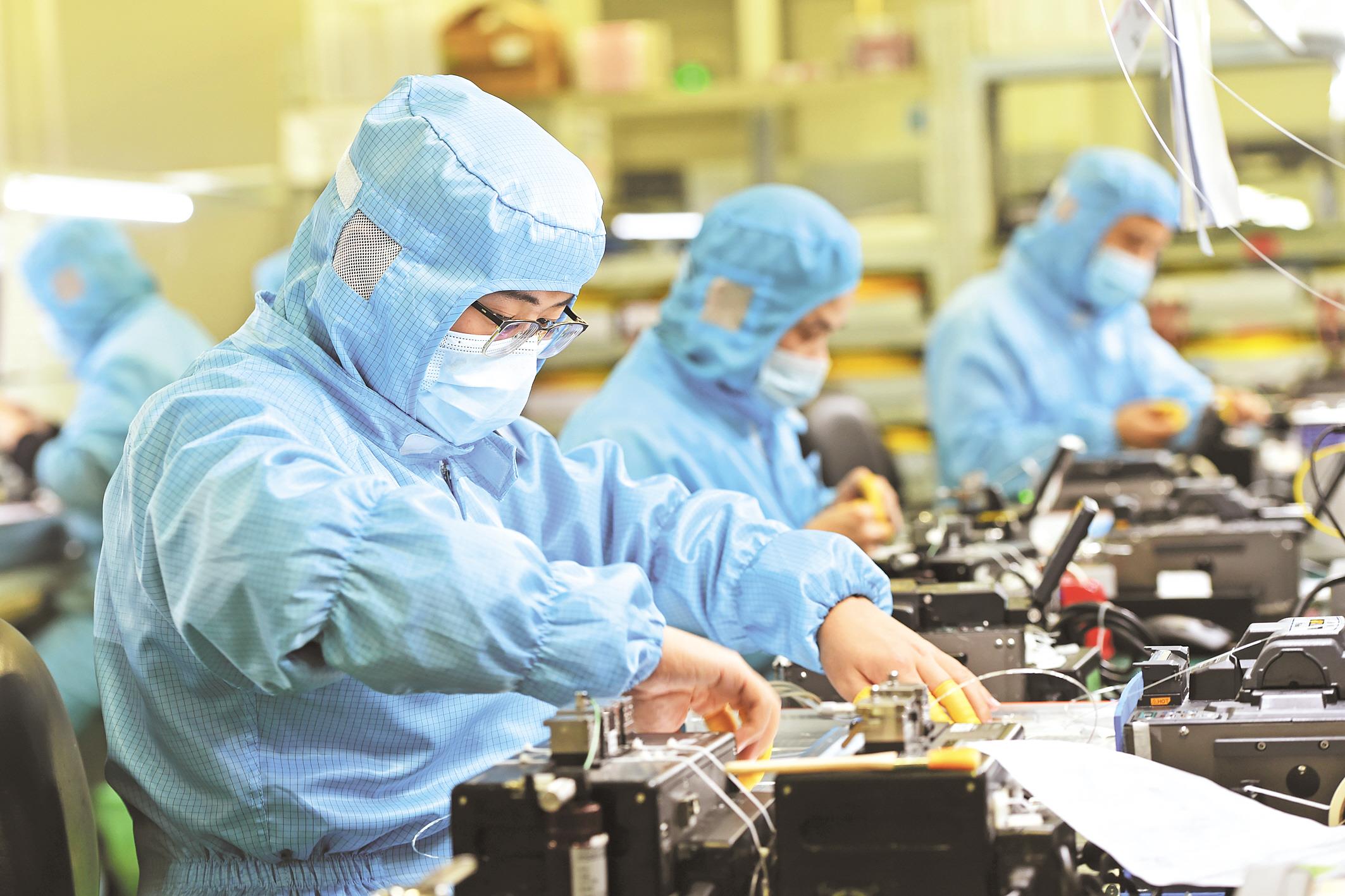 武汉锐科光纤激光技术股份有限公司脉冲光学车间,员工正在加紧生产光纤激光器光学模块。 (湖北日报全媒记者 李溪 摄)