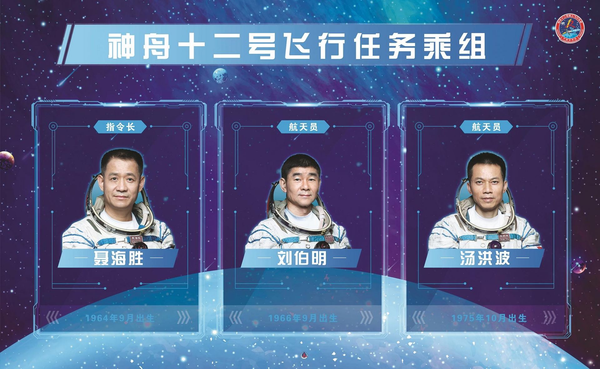 季启明说,经空间站阶段飞行任务总指挥部研究决定,瞄准北京时间6月17日9时22分发射神舟十二号载人飞船,飞行乘组由航天员聂海胜、刘伯明和汤洪波三人组成,聂海胜担任指令长,备份航天员为翟志刚、王亚平、叶光富。航天员聂海胜参加过神舟六号、神舟十号载人飞行任务,航天员刘伯明参加过神舟七号载人飞行任务,航天员汤洪波是首次飞行。