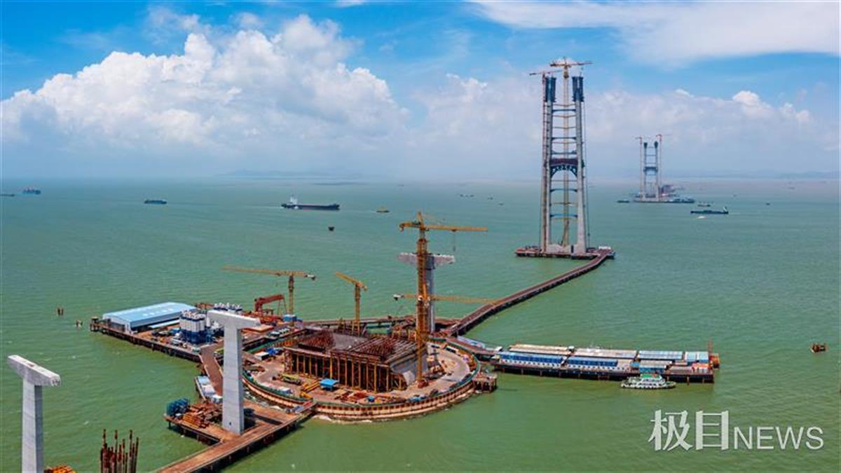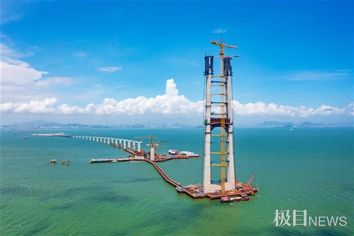 6月17日,随着伶仃洋大桥东索塔第48节塔柱混凝土浇筑完成,深中通道伶仃洋大桥东索塔完成封顶。