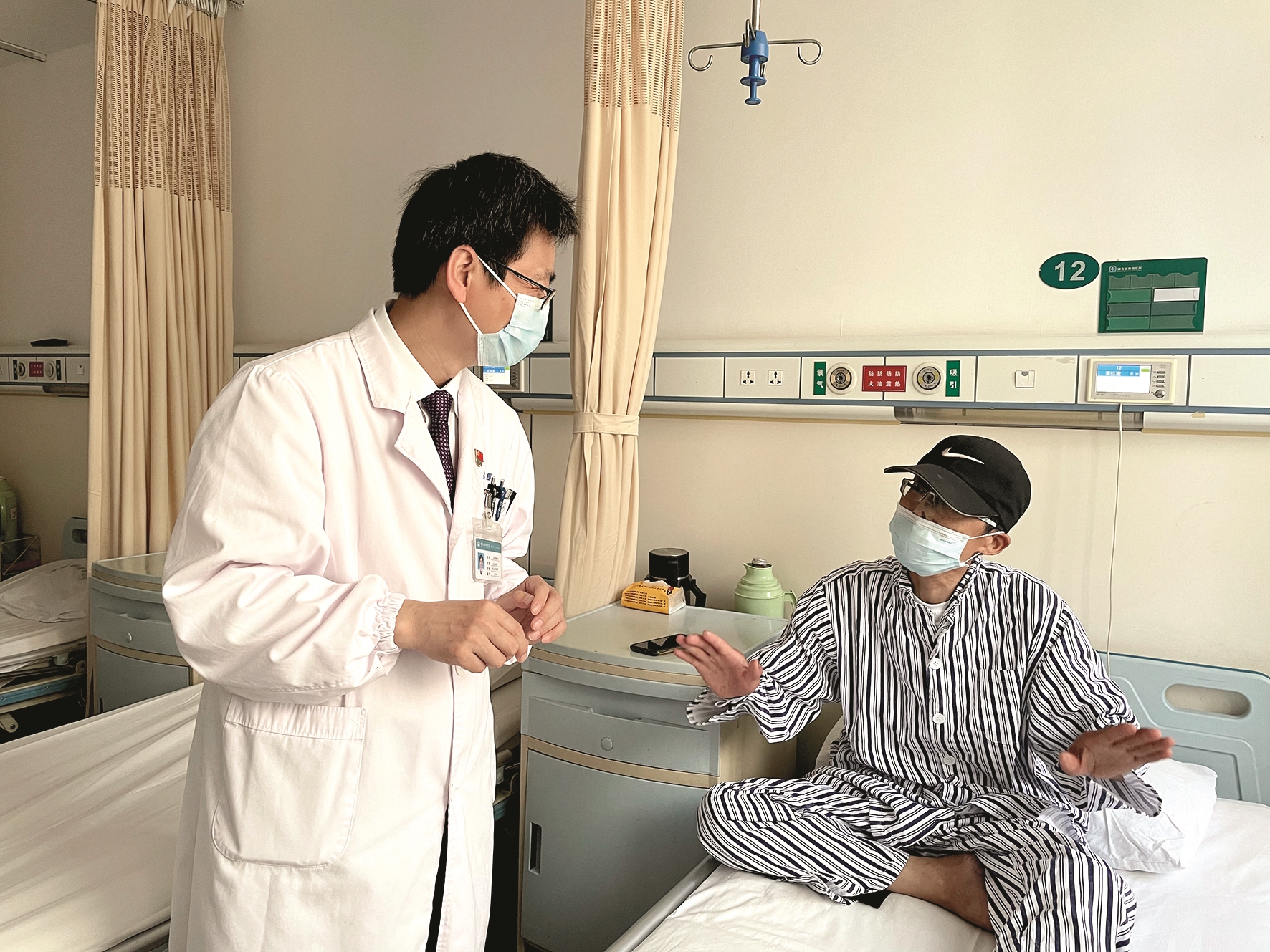 每次治疗完离开医院,他会像亲人一样,向在场的医护道别:“回家咯,20天后再相见!再见,工作愉快!”他笑称,医院差不多也是半个家了。