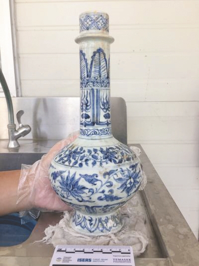 费克博士还提到,这批文物里有一个保存完好的青花瓷瓶,称得上是“独一无二”。据新加坡尤索夫伊萨东南亚研究院提供的文物图片,该瓷瓶瓶颈细长、瓶身呈圆球状,十分精美。