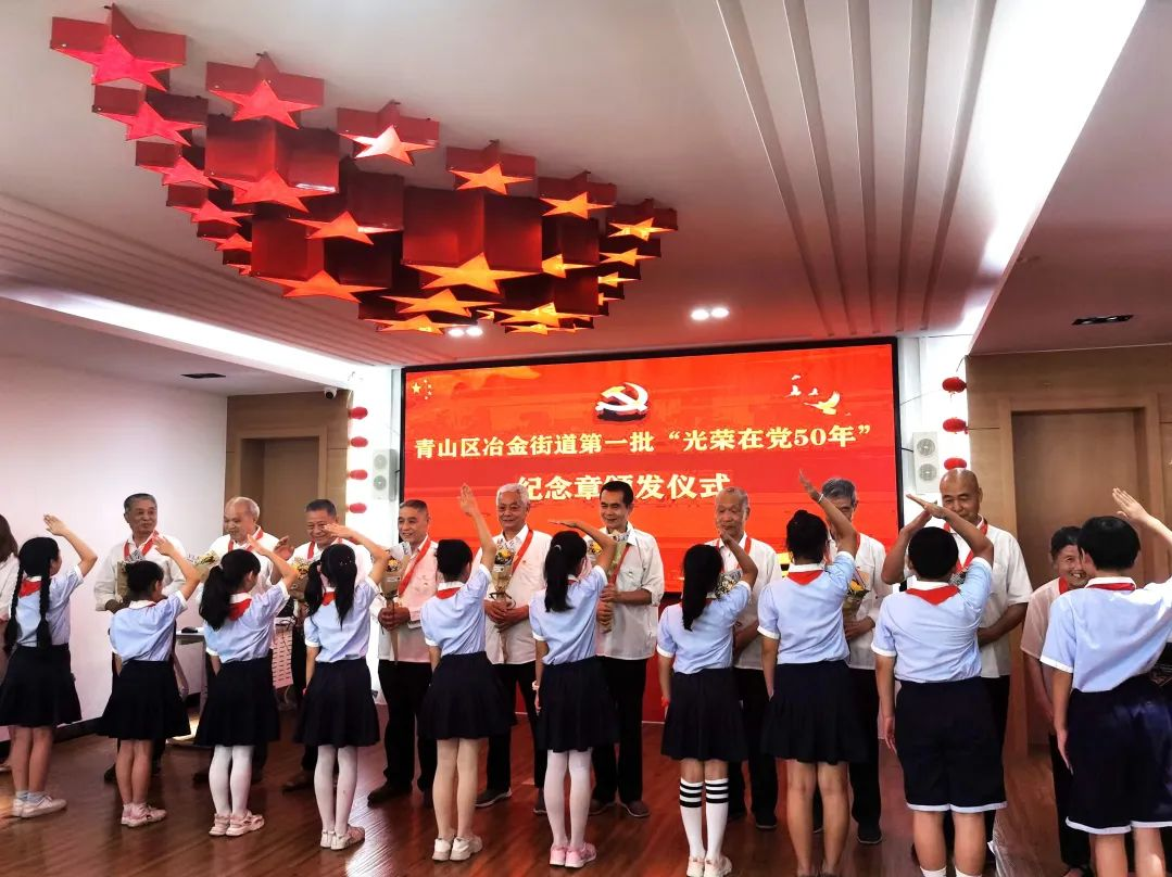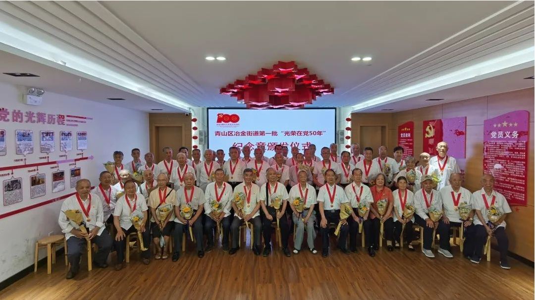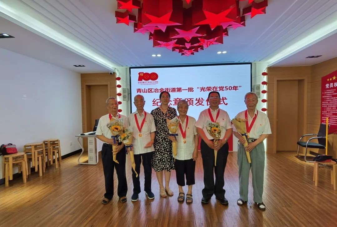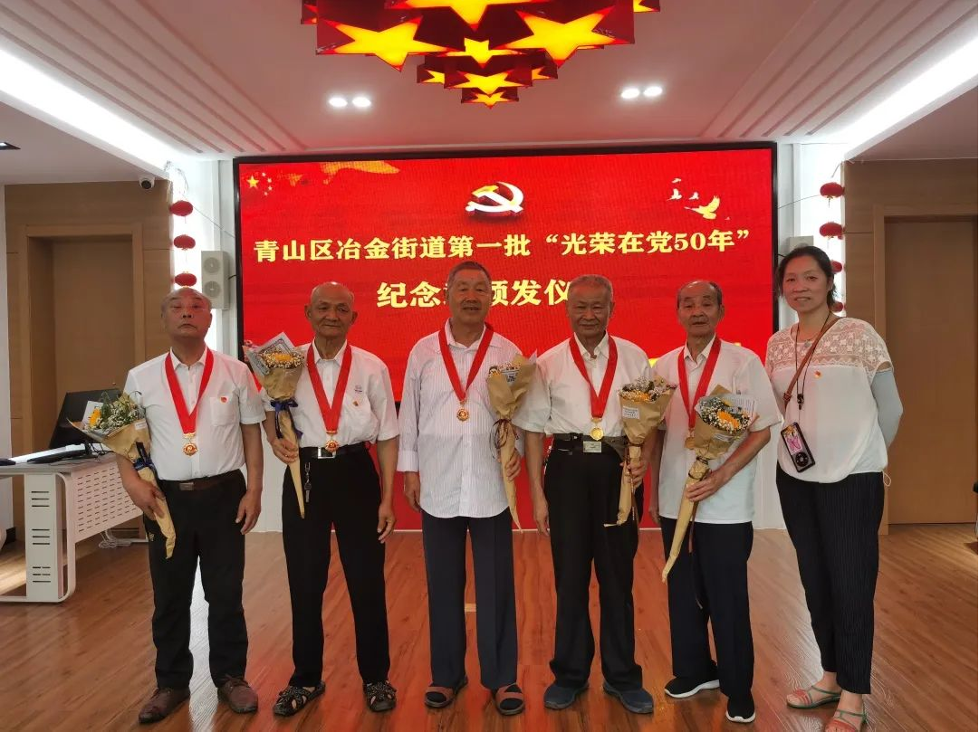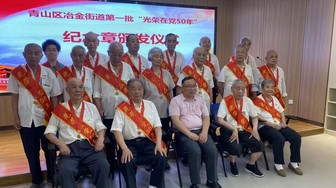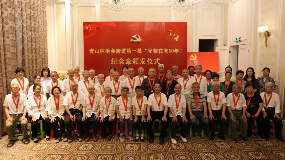 6月15日,冶金街道首场“光荣在党50年”纪念章颁发仪式在冶金街道现代花园社区党群服务中心的政治生活馆举行。冶金街道50年以上党龄的党员共有617名,其中最大的94岁,最小的69岁。在当天的颁发仪式上,共有来自各社区的50名党员代表参加。