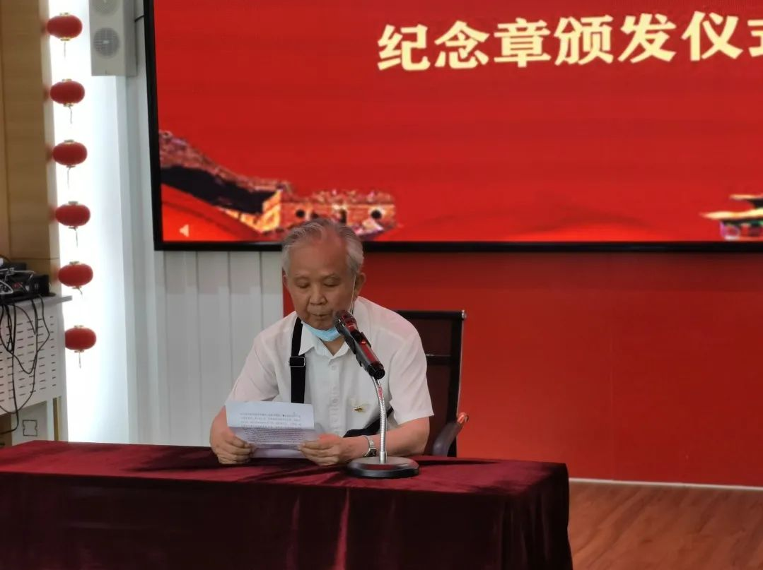 在科技苑社区颁发会场,党员们胸前佩戴着纪念章,怀揣激动的心情重温入党誓词,随后,在社区书记的带领下一同诵读《七律·长征》,从激情澎湃的诗词中,汲取强大革命精神力量。