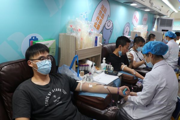 “我们很早就跟血液中心对接,为献血活动做了充分准备。”正读大二的邓永腾是“张宝”志愿服务队的队长,来到学校2年,他3次参与献血车进校园活动。当天,邓永腾顺利捐献了400毫升热血。