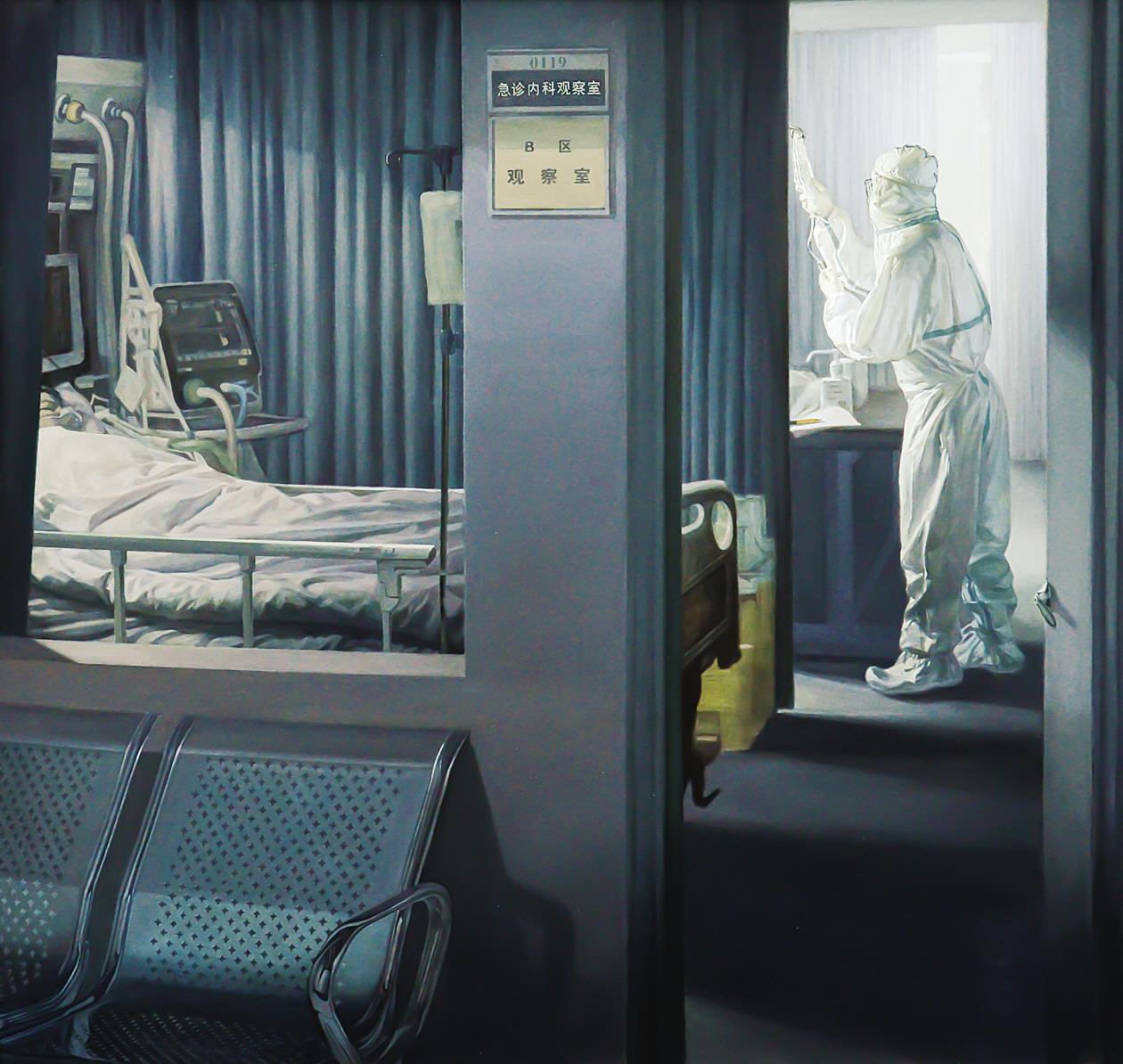 肖丰 吴青 《穿过黑暗的那道光——武汉庚子年春》 油画