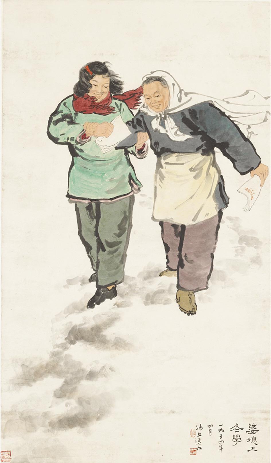 汤文选 《婆媳上冬学》 中国画