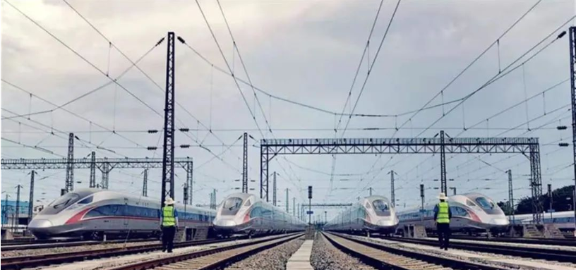 武汉动车段整装待发的动车