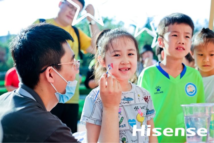为了让国内的球迷享受到真实的观赛,除了2020欧洲杯官方指定产品U7及海信大屏陪伴球迷观赛外,现场还布置了球迷脸绘、观赛小吃套餐、球场趣味足球、U7合影打卡等系列环节体验。借由父亲节的契机,50组球迷家庭父子现场比拼,在释放足球激情的同时,享受与孩子亲密的快乐时光。