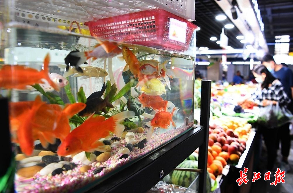 生鲜市场里售卖的金鱼扮靓市场。 长江日报记者高勇 摄