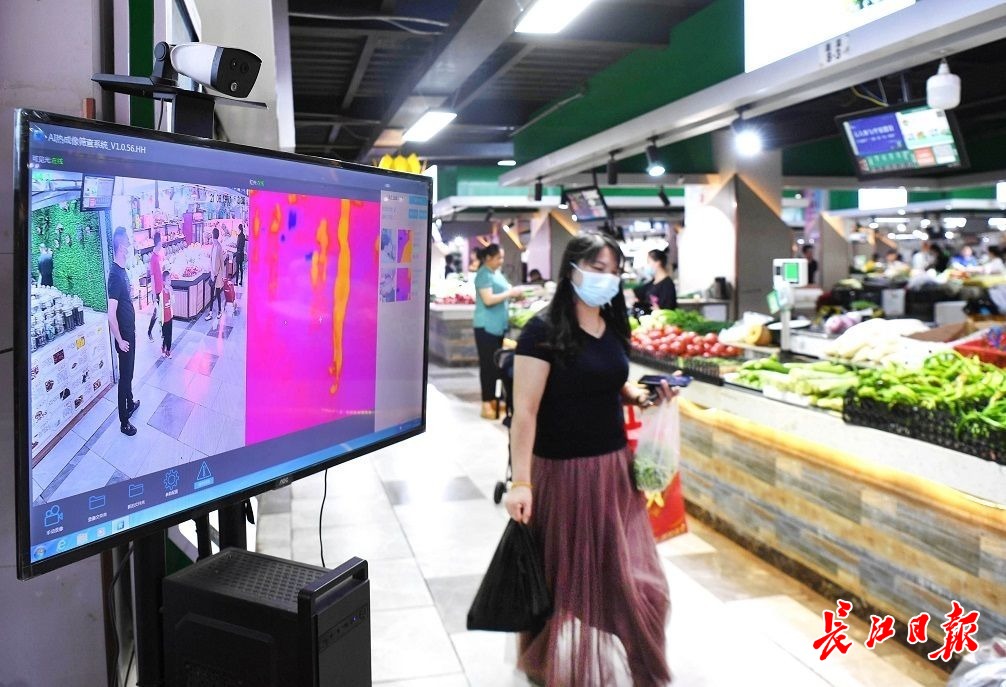 市场入口安装有红外体温检测仪。 长江日报记者高勇 摄