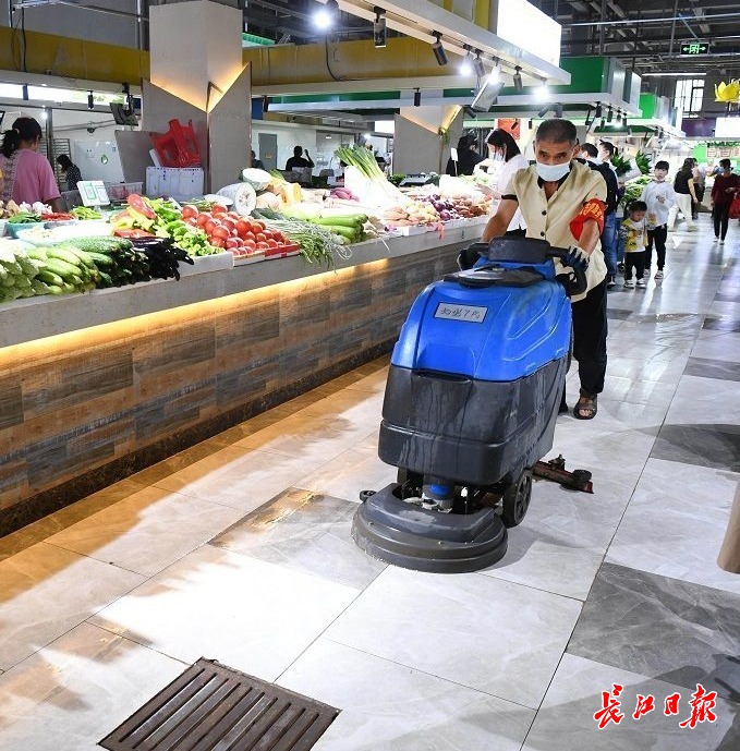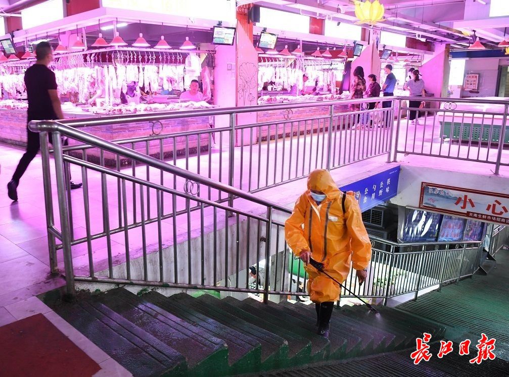 卫生管理人员每天对市场消杀清洁。 长江日报记者高勇 摄