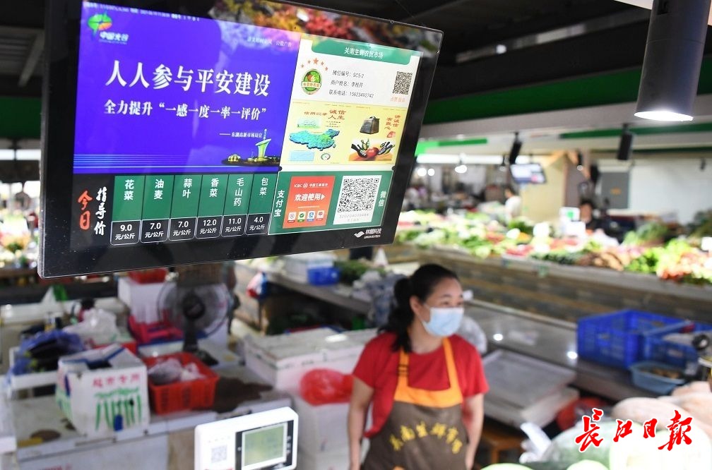 每个经营户公示屏上菜价、二维码、营业执照等信息一目了然。 长江日报记者高勇 摄