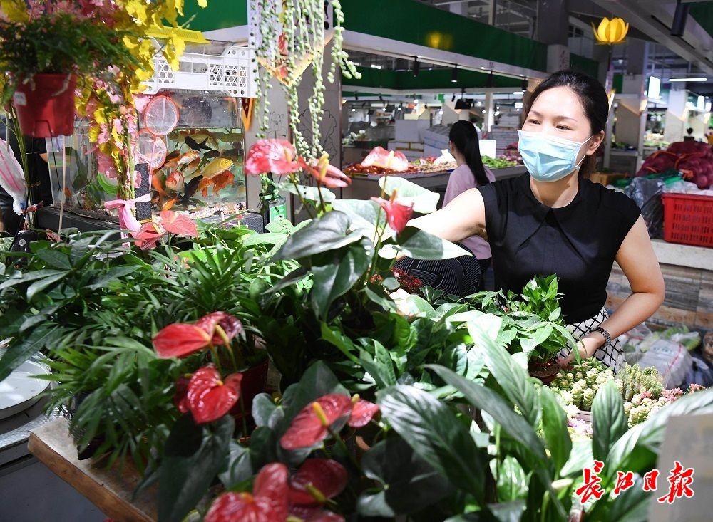 生鲜市场里还有鲜花供应。 长江日报记者高勇 摄