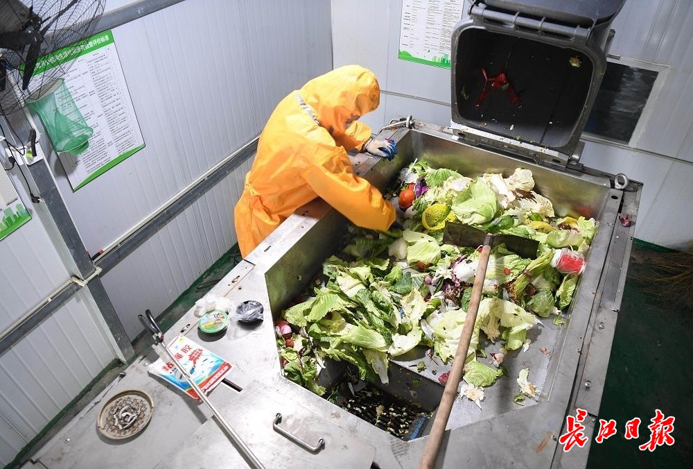 生鲜垃圾分类处理机械化。 长江日报记者高勇 摄