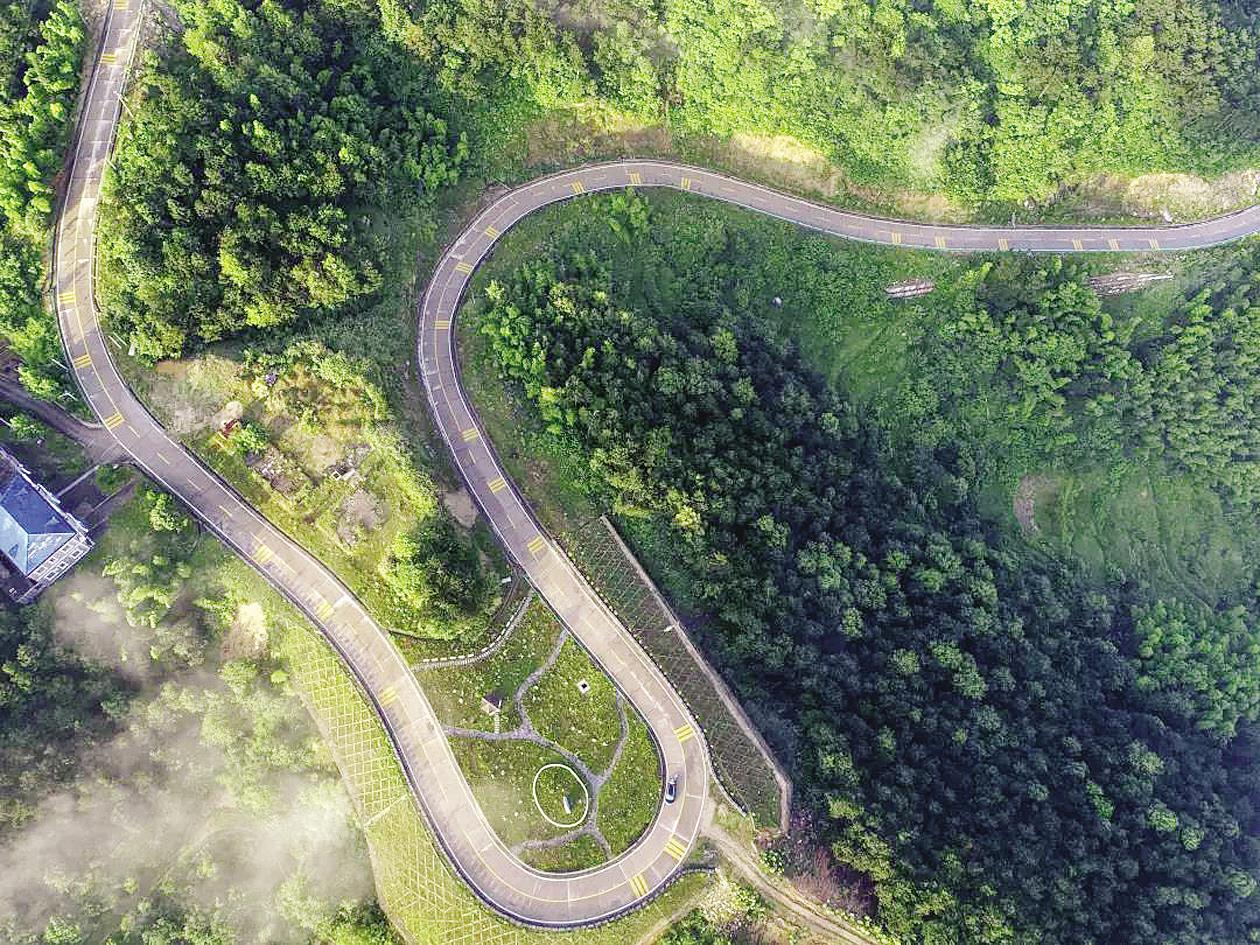 这条路位于长阳县新贝河到金竹坪,两边都是悬崖峭壁,22道弯垂直落差300米,被当地人称为“回头旋”,是湖北弯道最多的公路。