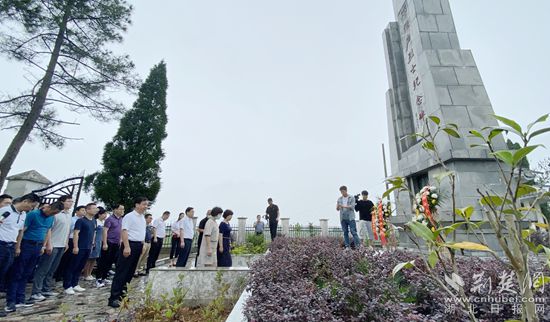 在杉木乡藕塘村邓雅声烈士陵园,全体人员敬献花篮,集体默哀,缅怀英烈。邓雅声是黄梅农民运动领导人之一。1928年春,时任京汉铁路特委书记的邓雅声在汉口不幸被捕。面对敌人的威逼利诱和严刑拷打,他以《绝命词四章》回敬:“饮弹从容向天笑,长留浩气在人间”。
