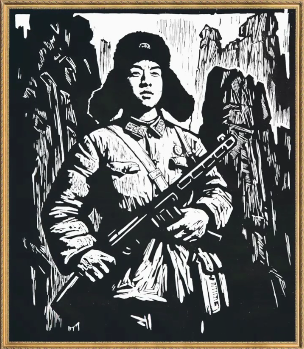 木刻版画是一种刀刻艺术,它具有锋利刚劲的特点,更突出雷锋战士形象的挺拔与刚毅。