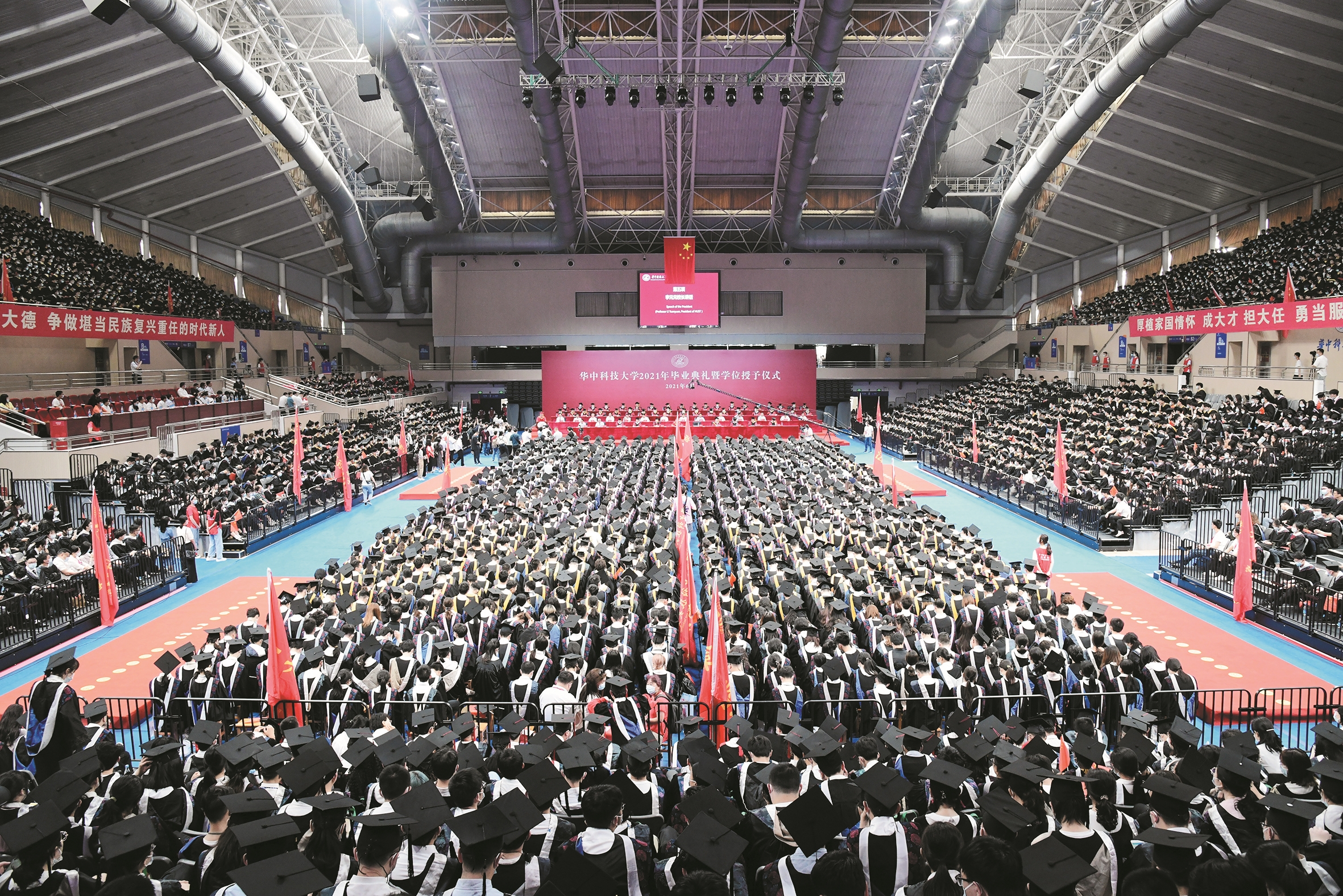6月21日上午,华中科技大学举行2021年本科生毕业典礼,近7000名本科毕业生和母校告别。中国工程院院士、该校校长李元元深情寄语毕业生,要有家国情怀,要勇担大任,做民族复兴的圆梦人。中国科学院院士、中科院物理所所长方忠作为校友代表发言,和学弟学妹们分享了自己的求学故事,而听众中,就包括了他的女儿小方——她今年从华科大本科毕业,将留校读研。