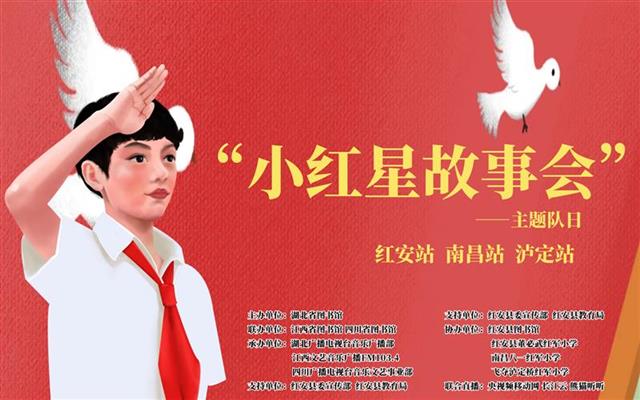 活动当日,“小红星故事会”首先在湖北红安开讲。湖北省图书馆馆员叶飞、湖北广播电视台音乐广播部主持人大琦和董必武红军小学的孩子们一起,分享了“铜锣一响,四十八万”、“红军对联”等发生在红安的革命故事。