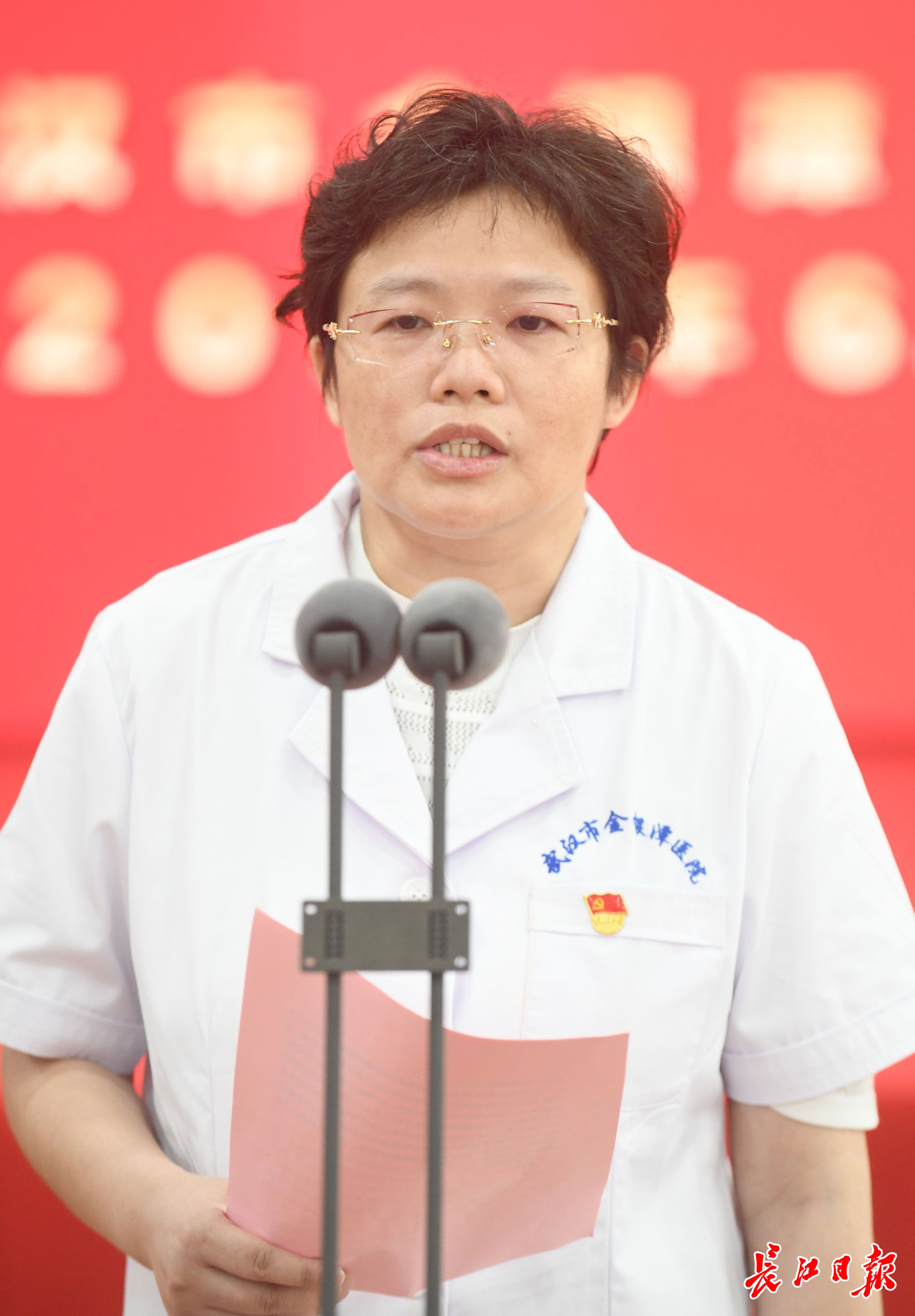 长江日报6月22日讯 今天上午,武汉举行百名新党员代表入党宣誓活动。来自金银潭医院的新党员代表龚凤云作了发言,表示将用毕生的追求与行动,践行今天的庄重宣誓。