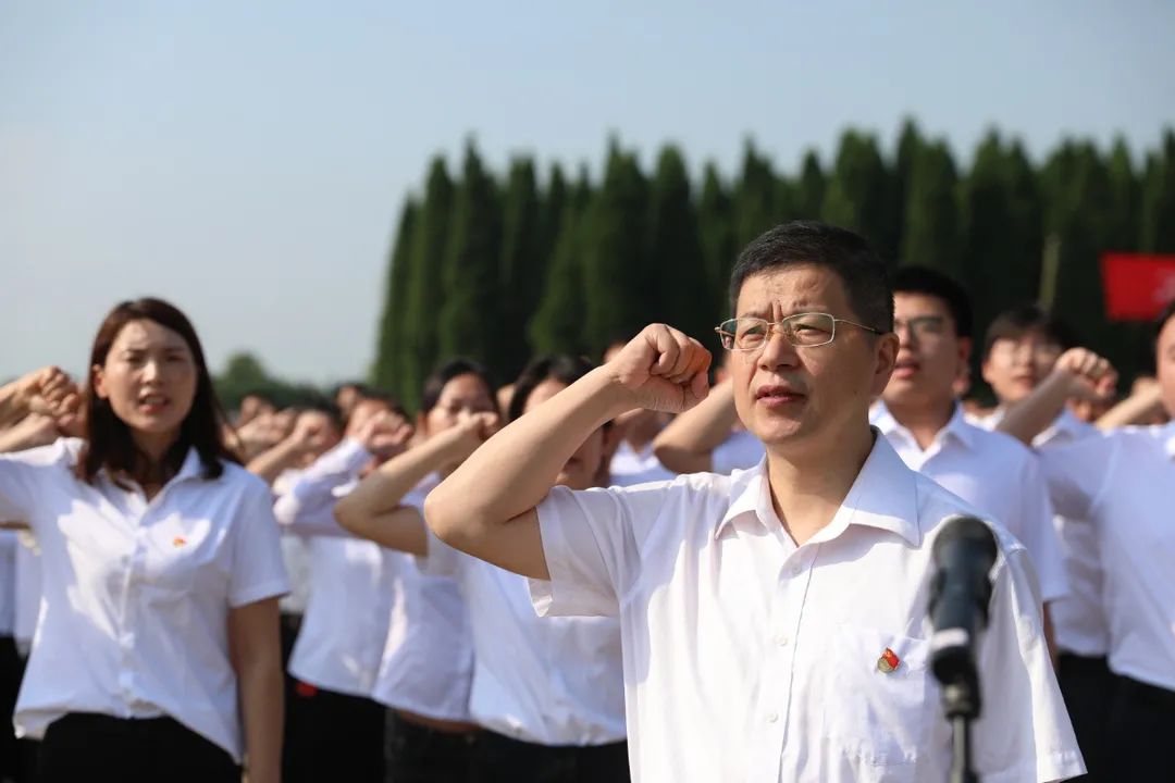 “我宣誓,我志愿加入中国共产党,拥护党的纲领,遵守党的章程,履行党员义务,执行党的决定……”云梦县委书记高文峰带领新入党党员面对鲜红的党旗,举起右手,庄严宣誓。最后,全体人员依次瞻仰烈士纪念碑,献上手中鲜花,向革命烈士致以崇高敬意。