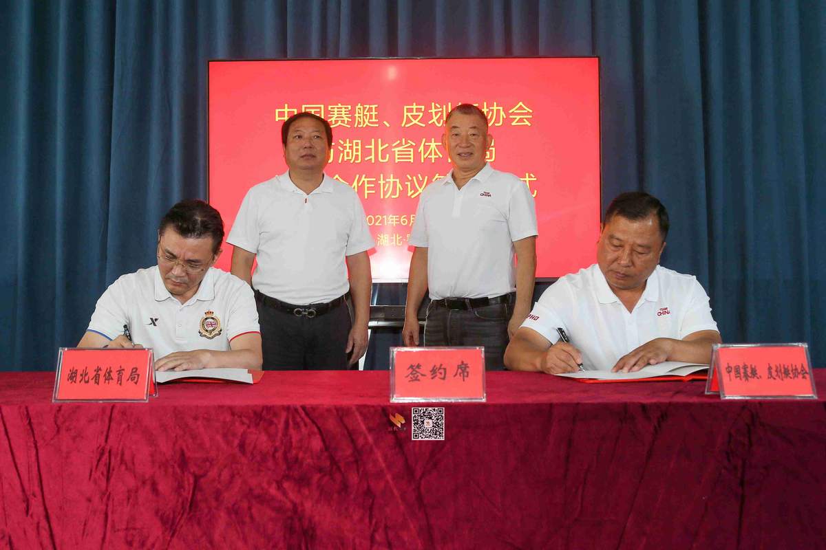 湖北素有“千湖之省”的美誉,是我国最早开展水上运动的省份之一。从1956年成立至今,湖北水上运动已经走过了65年的风雨历程,一代又一代湖北水上人艰苦奋斗、砥砺前行,为中国水上事业发展贡献了力量。近年来,在中国赛艇、皮划艇协会的支持帮助下,湖北水上运动项目逐步复兴、加速崛起,越来越多湖北运动员、教练员进入国家集训队;湖北水上训练环境升级迭代、焕然一新,成为中国PHD授权的首个省级中心;“中国水上运动学院”落户湖北,水上运动影响日益增强、不断扩大。胡功民表示:“此次合作和基地命名挂牌,充分体现了国家运动协会对湖北的信任、关心和支持,是湖北赛艇、皮划艇运动跨越发展的重大机遇,必将引领水上项目突破,必将带动湖北体育发展,必将助力体育强国建设。我们将在中国赛艇协会、皮划艇协会的指导帮助下,大力发扬“抗疫精神”,积极主动担当作为,全力建设水上运动强省,为中国水上运动发展贡献湖北力量。”最后,祝愿中国赛艇队、皮划艇队“战东京,艇中国,筑船奇!”在东京奥运会上取得骄人成绩!
